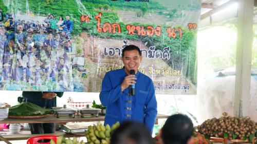 นายยศวัฒน์ พัชระศักดิ์สกุล นายอำเภอวังสะพุง พร้อมด้วยหัวหน้าส่วนราชการ ผู้นำท้องที่ท้องถื่น กำนัน ผู้ใหญ่บ้าน เครือข่ายโคก หนอง นา อำเภอวังสะพุง สำนักงานพัฒนาชุมชนอำเภอวังสะพุง นำโดยนายนัทธี ธงทอง พัฒนาการอำเภอวังสะพุง และเจ้าหน้าที่สำนักงานพัฒนาชุมชนอำเภอวังสะพุง ร่วมโครงการกิจกรรมเอามื้อสามัคคี พัฒนาศูนย์เรียนรู้ทฤษฎีใหม่รูปแบบ “โคก หนอง นา”เพื่อส่งเสริมการเรียนรู้การน้อมนำปรัชญาของเศรษฐกิจพอเพียง และพัฒนาศักยภาพของครัวเรือนต้นแบบ โคก หนอง นา พัฒนาชุมชน โดยมีกิจกรรมการทำแซนด์วิชปลา เพื่อเป็นแหล่งอาหารให้ปลา การห่มฟาง ปลูกผัก และแบ่งปันเมล็ดพันธุ์พืช ให้พื้นที่โคกหนองนา