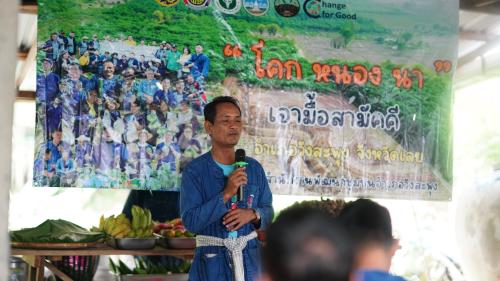 กิจกรรมเอามื้อสามัคคี พัฒนาศูนย์เรียนรู้ทฤษฎีใหม่รูปแบบ “โคก หนอง นา”