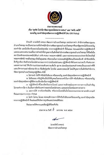 ประกาศเจตนารมณ์นโยบาย No Gift Policy จากการปฏิบัติหน้าที่